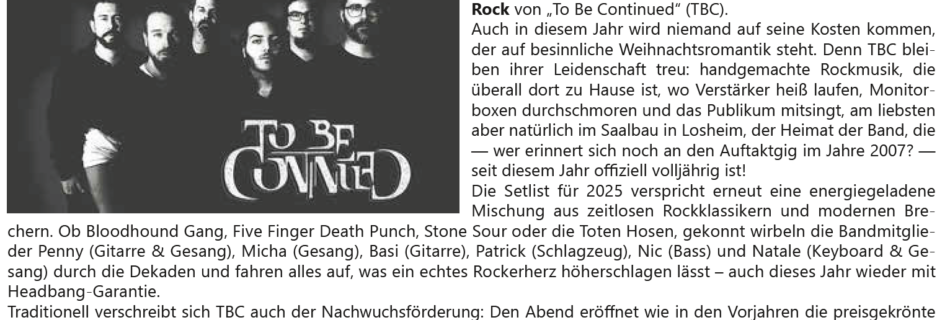 Also nehmt Euch für den Freitag, 6. Juni 2025, nichts anderes vor, und folgt den Ruf in das wunderschöne Züsch, wo wir den Kirmesplatz rocken werden. Eintritt frei.